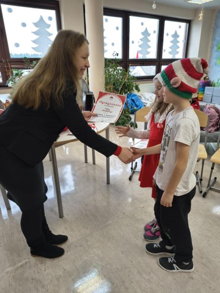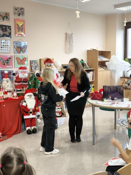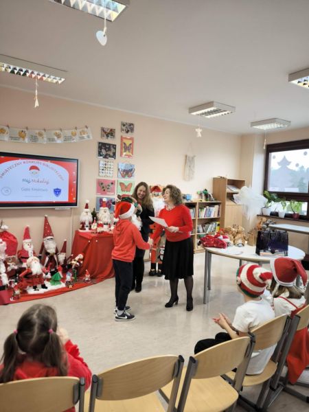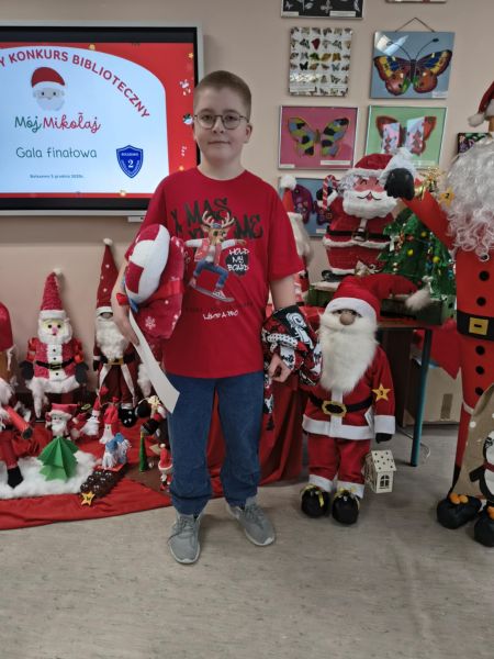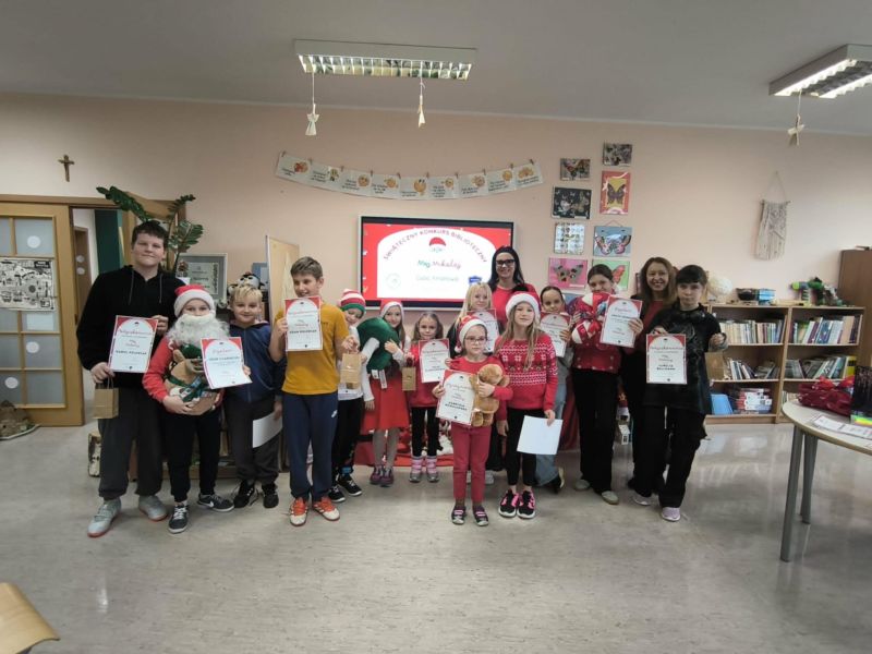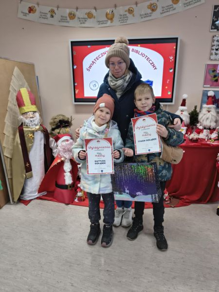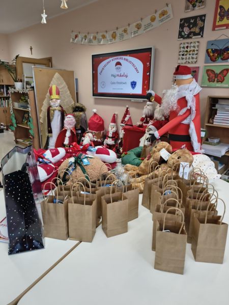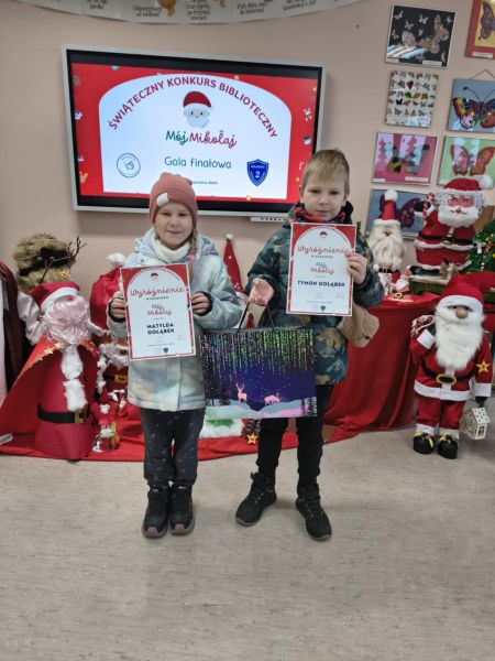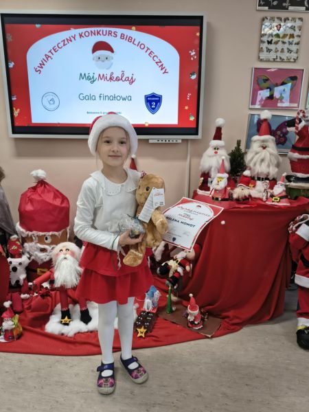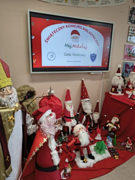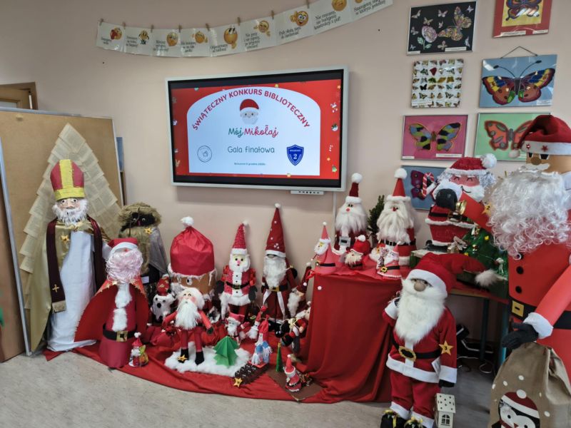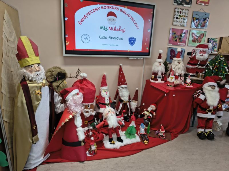 Zakończył się Świąteczny Konkurs Biblioteczny "Mój Mikołaj" organizowany przez bibliotekę szkolną. Jak co roku, konkurs miał charakter rodzinny. Prace, które przyszły do biblioteki, a było ich aż 25, reprezentowały różne uosobienia tych, co rozdają prezenty podczas zimowych świąt. Był więc prawdziwy Święty Mikołaj z Miry, Kaszubski Gwiazdor a także Dziadek Mróz i tradycyjne świąteczne Mikołaje.
