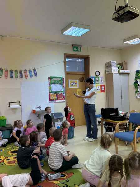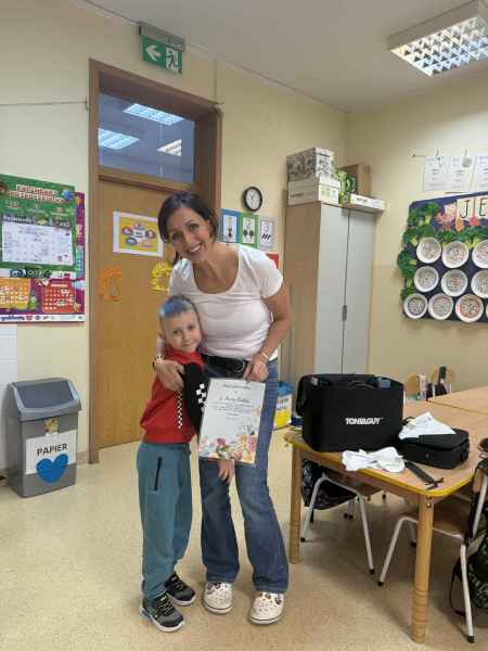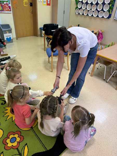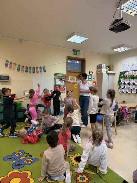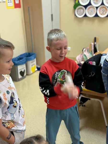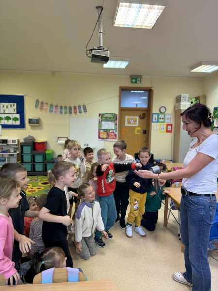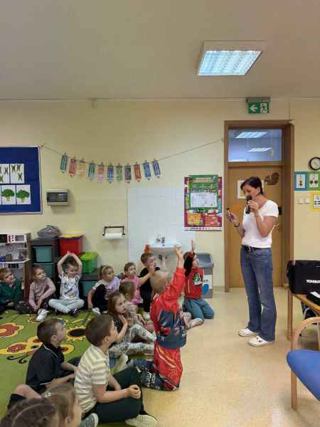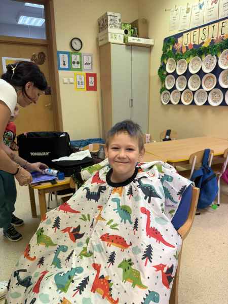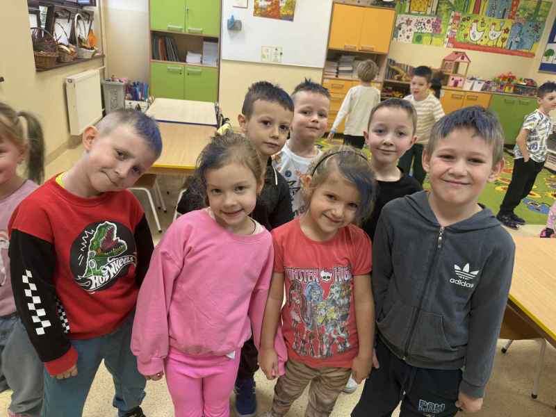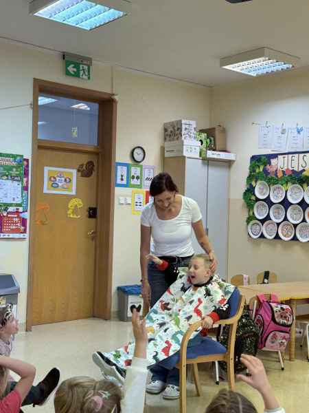 Dziś naszą grupę odwiedziła mama Liliany, Pani Anna, która wykonuje zawód fryzjera. Opowiedziała dzieciom o swojej codziennej pracy, pokazała różne sprzęty i akcesoria potrzebne w salonie fryzjerskim. Dzieci z zaciekawieniem słuchały, jak wygląda tworzenie fryzur i jak należy dbać o włosy. Nie zabrakło też praktycznej części zajęć – chętne dzieci mogły ozdobić swoje włosy kolorowymi sprayami! Było przy tym mnóstwo radości i śmiechu. Na zakończenie pani fryzjerka przygotowała krótki quiz wiedzy o zawodzie, w którym dzieci doskonale poradziły sobie z odpowiedziami. Dziękujemy Pani Annie za ciekawe spotkanie, inspirującą rozmowę i wprowadzenie nas w tajniki pracy fryzjera!