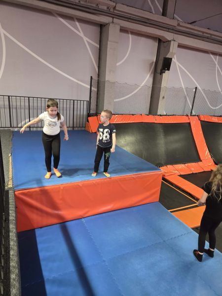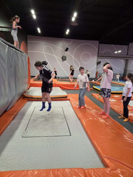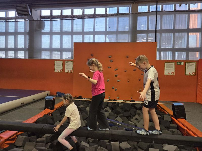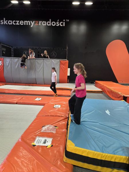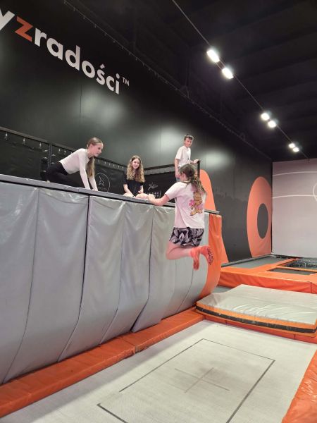 Po lekcji historii nadszedł czas na aktywność fizyczną. Dzięki wspaniałomyślności Rady Rodziców naszej szkoły uczniowie mogli spełnić swe marzenia o lataniu w parku trampolin Jumpcity w Gdańsku, skacząc na trampolinach, do basenu z gąbkami, ćwicząc wsady do koszów i korzystając z licznych atrakcji.