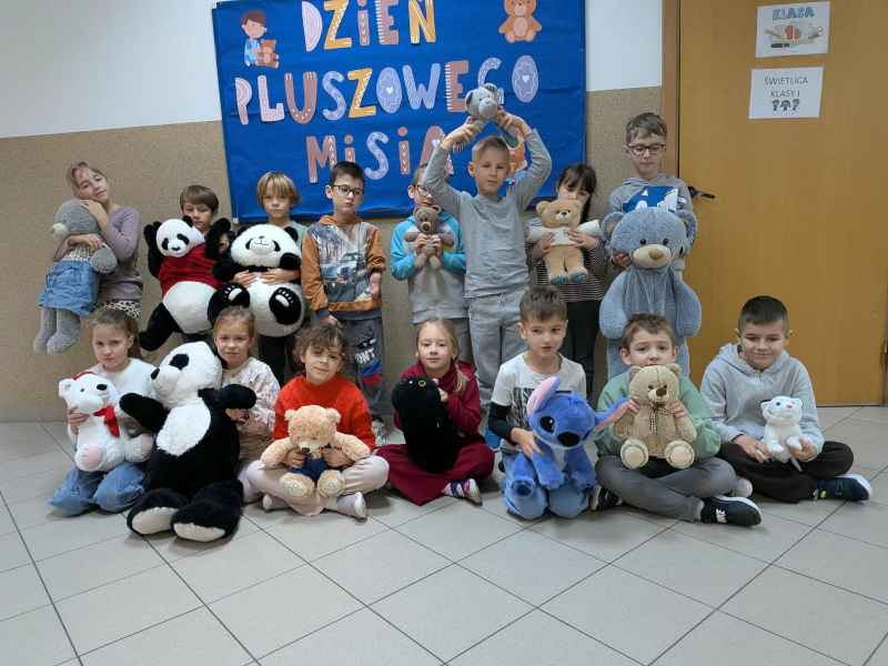 Cóż to był za dzień! We wtorek 25 listopada naszą szkołę odwiedziła armia pluszowych gości. Z okazji swojego święta, Dnia Pluszowego Misia, pluszaki zasiadły w szkolnych ławkach. Przybyły również do klasy 1b.