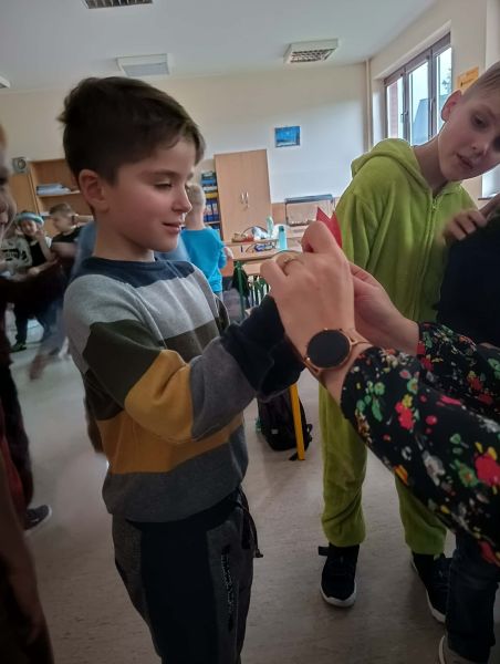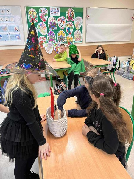 Uczniowie klas 1–3 przeżyli dziś prawdziwą podróż do świata magii i wróżb. Wspólnie odkrywali przyszłość podczas tradycyjnego lania wosku, losowania karteczek, zabawnych przepowiedni oraz andrzejkowych zgadywanek. Na twarzach dzieci nie brakowało uśmiechu i zachwytu, a szkolne sale wypełniła wyjątkowa, radosna atmosfera. To był dzień pełen dobrej zabawy, kreatywności i wspólnej integracji. Dziękujemy wszystkim, którzy pomogli stworzyć tak magiczne chwile!
