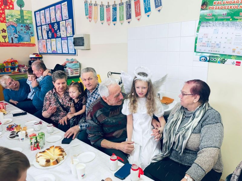 Dzieci piękne zaprezentowały się śpiewając kolędy i odgrywając swoje role, grały na instrumentach muzycznych oraz zaśpiewały piosenkę specjalną dla babci i dziadka. Na koniec dzieci wręczyły upominki własnoręcznie wykonane. Dziś było bardzo rodzinnie. Takie chwile zostają zapamiętane na zawsze. Wszystkim babciom i dziadkom życzymy dużo zdrowia i samych pięknych chwil z wnukami i wnuczkami !