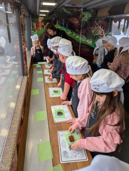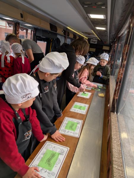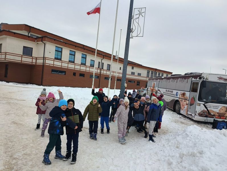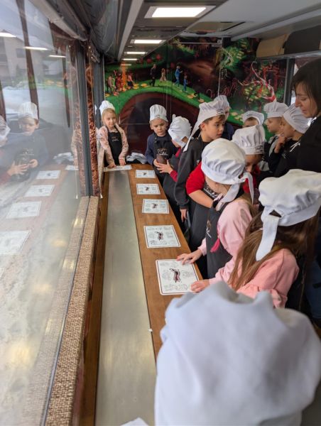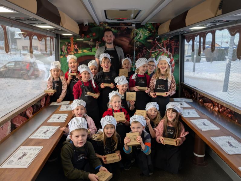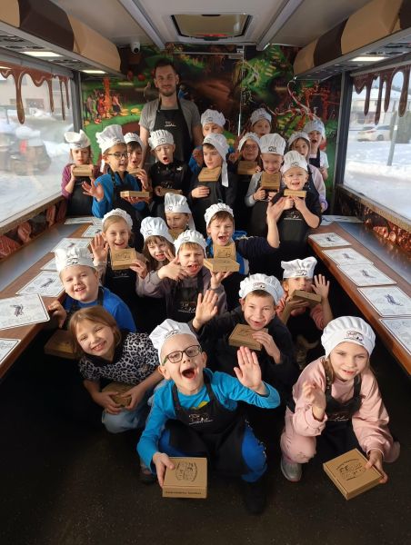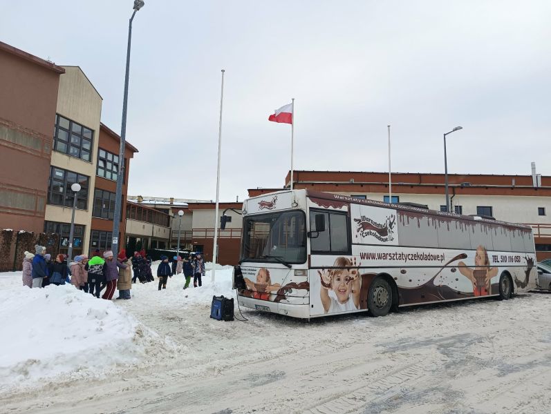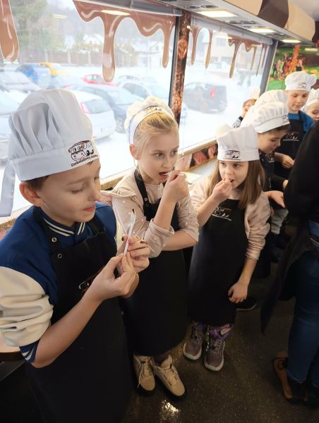 13 stycznia na szkolny parking przyjechał wyjątkowy Czekoladowy Autobus, który zabrał uczniów klas 1a i 1c w niezwykle słodką podróż. Podczas warsztatów dzieci przebrały się w fartuszki i czapki, poznały owoc kakaowca oraz z ciekawością odkrywały tajniki powstawania czekolady. Degustowały płynną gorzką czekoladę oraz trzy jej różne rodzaje.
