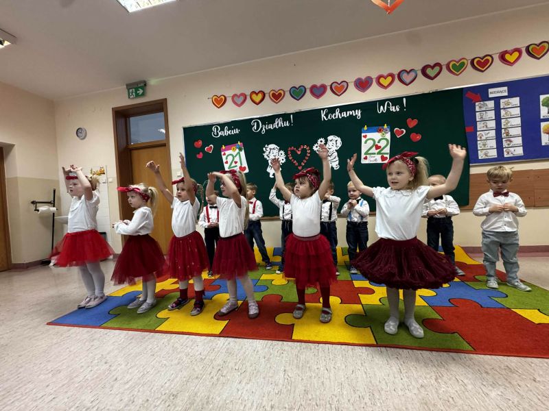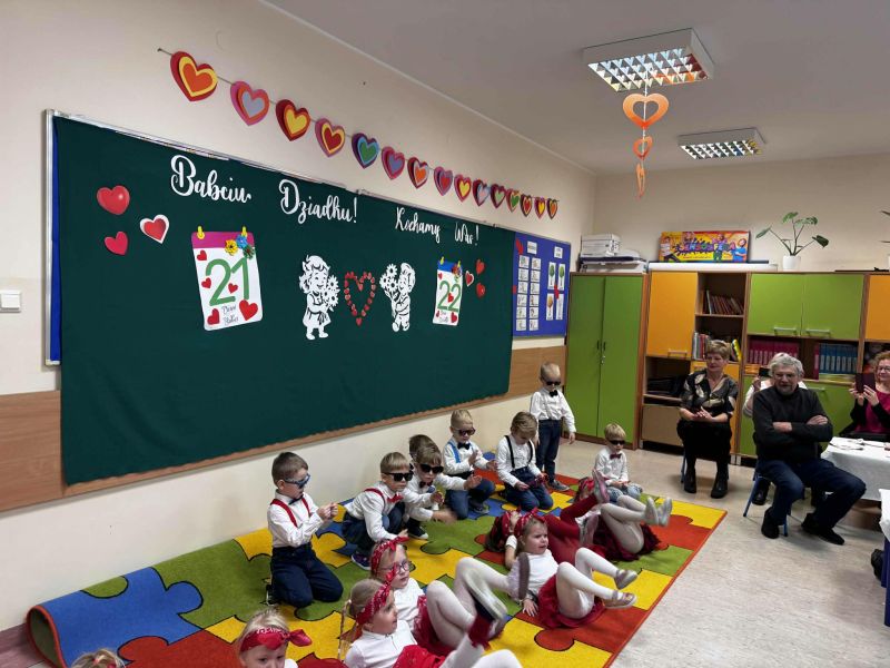 Dzień Babci i Dziadka w oddziale 0d był pełen radości i wzruszeń. Dzieci z wielkim zaangażowaniem zaprezentowały przygotowane wierszyki, piosenki i tańce. Następnie wręczyły własnoręcznie wykonane laurki i upominki. Spotkanie upłynęło w miłej, rodzinnej atmosferze i na długo pozostanie w naszej pamięci.