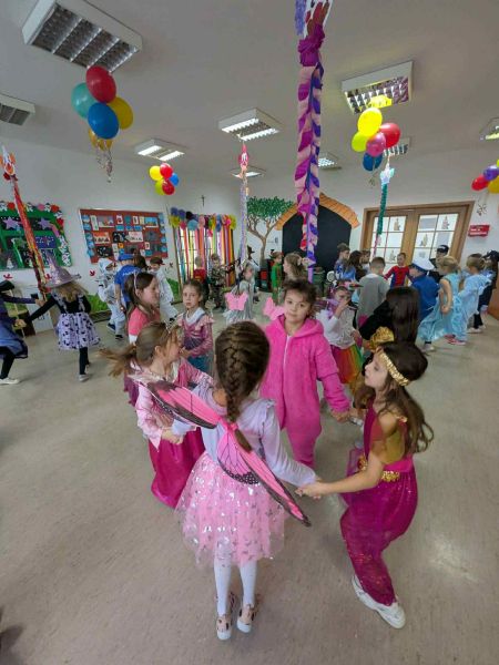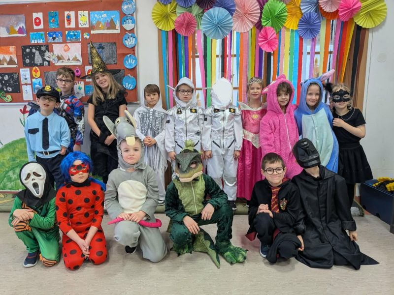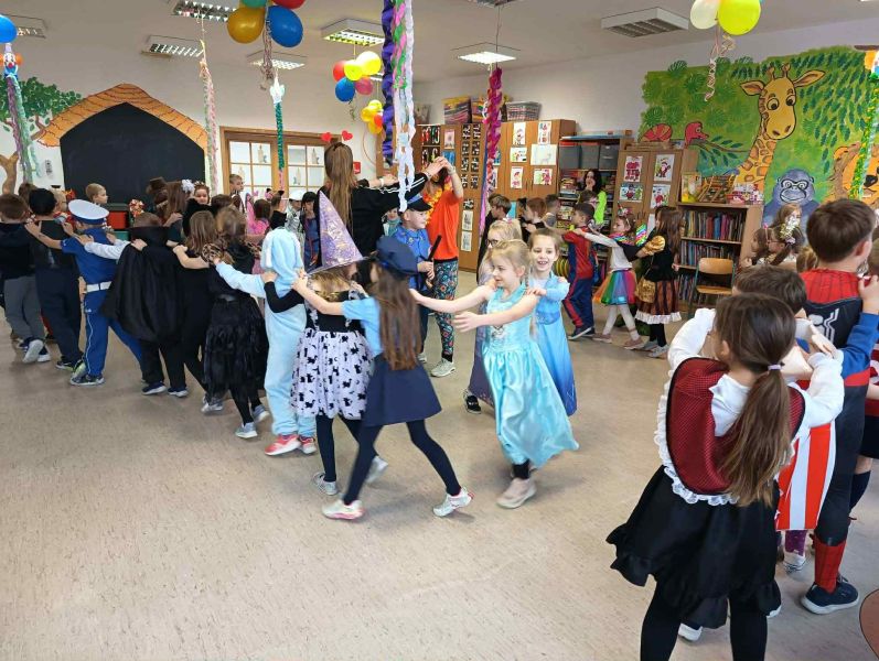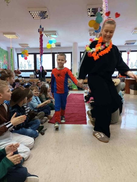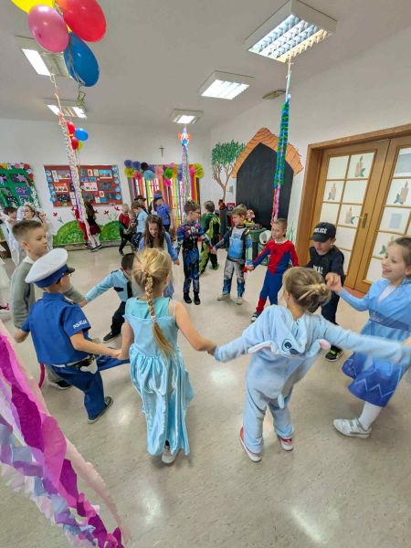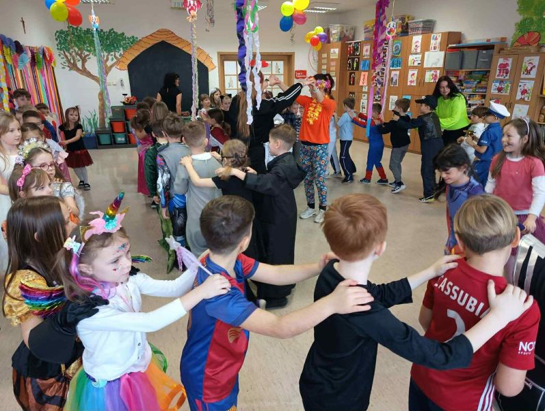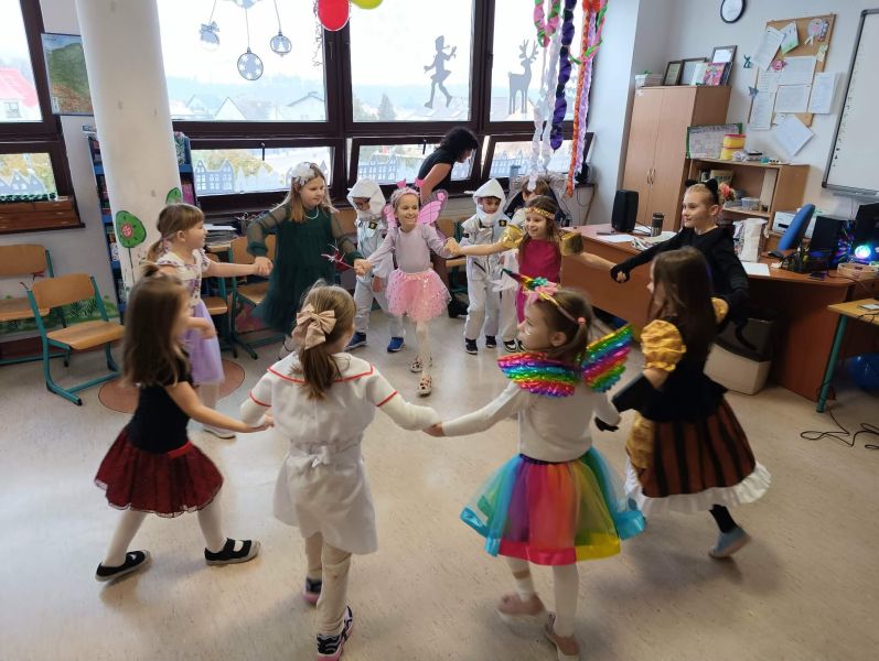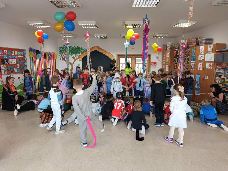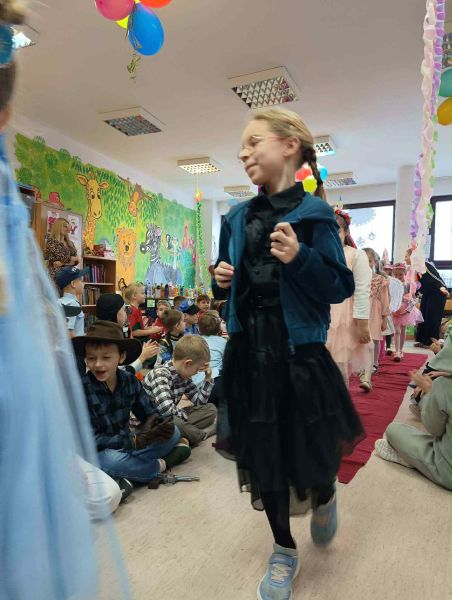 W miniony piątek w naszej szkole odbył się radosny i kolorowy Bal Karnawałowy dla uczniów klas I–III oraz zeróweczek. Szkolna świetlica tego dnia zamieniła się w miejsce pełne muzyki, uśmiechów i dobrej zabawy, a dzieci, przebrane w bajkowe i niezwykle pomysłowe stroje,