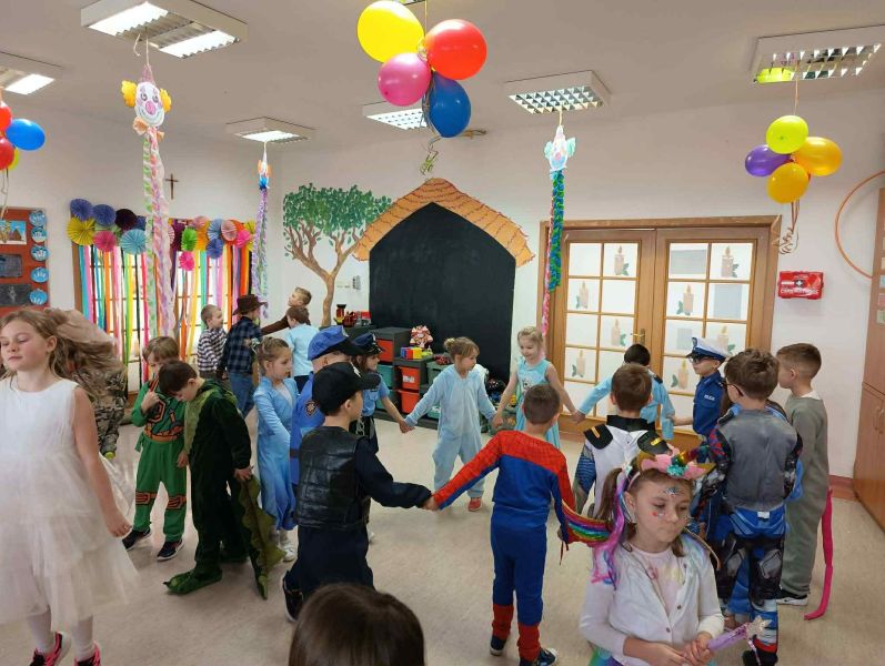 Wyjątkowy klimat wydarzenia podkreślała pięknie udekorowana sala, przygotowana z ogromnym zaangażowaniem przez świetliczaków - pełna kolorów, balonów i karnawałowych dekoracji.