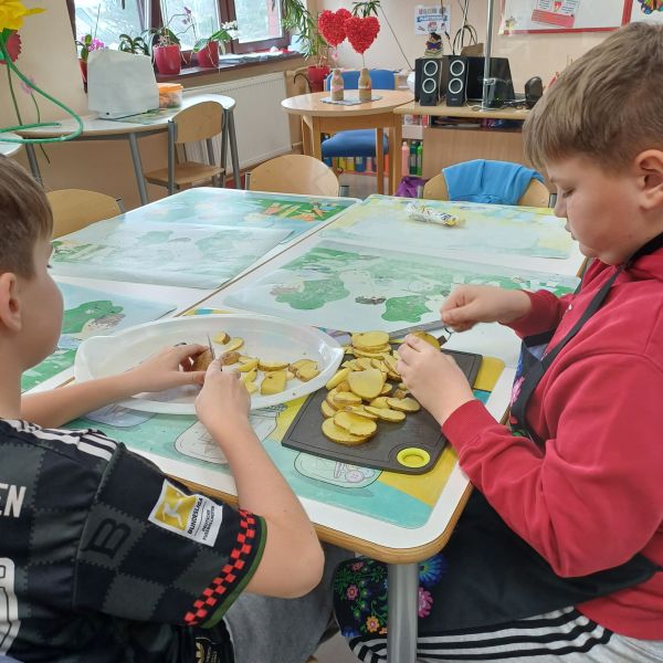 Podczas zajęć kulinarnych w Laboratorium Przyszłości, prowadzonych pod kierunkiem nauczycielki Bożeny Reszke, uczniowie mieli okazję wcielić się w rolę młodych kucharzy i odkryć, że nawet fast foody mogą być przygotowane w zdrowszej odsłonie. Tematem zajęć było przygotowanie popularnych przekąsek, takich jak chipsy, burgery i hot dogi, ale w wersji bardziej wartościowej dla naszego organizmu. Już od pierwszych minut pracy widać było ogromne zaangażowanie całej klasy.