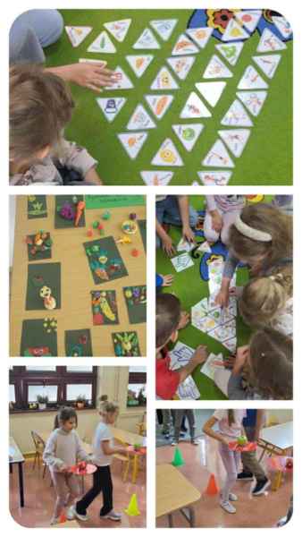 W ramach tematyki związanej z witaminami dzieci poznały ich znaczenie dla organizmu oraz dowiedziały się, w jakich produktach spożywczych można je znaleźć. Zajęcia wzbogacono o działania praktyczne – z okazji obchodów Dnia Jabłka przeprowadzono degustację różnych odmian jabłek, dzięki czemu dzieci mogły porównać ich smak, kolor i konsystencję. Odbyły się również zajęcia ruchowe – tor przeszkód z jabłkiem na paletce, które połączyły aktywność fizyczną z elementem zabawy.