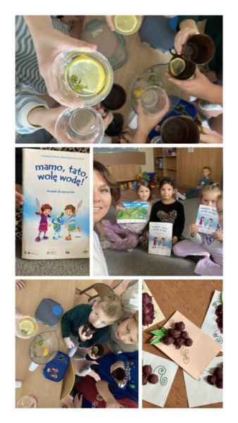Podczas zajęć dzieci dowiedziały się, czym charakteryzuje się zdrowy styl życia – omówione zostały zasady prawidłowego odżywiania, znaczenie aktywności fizycznej oraz rola witamin w codziennej diecie. Uczniowie poznali piramidę zdrowego żywienia, którą wspólnie ułożyli, ucząc się, jakie produkty powinny znajdować się w codziennym jadłospisie. Przygotowywali również wodę z cytryną jako zdrową alternatywę dla słodzonych napojów.