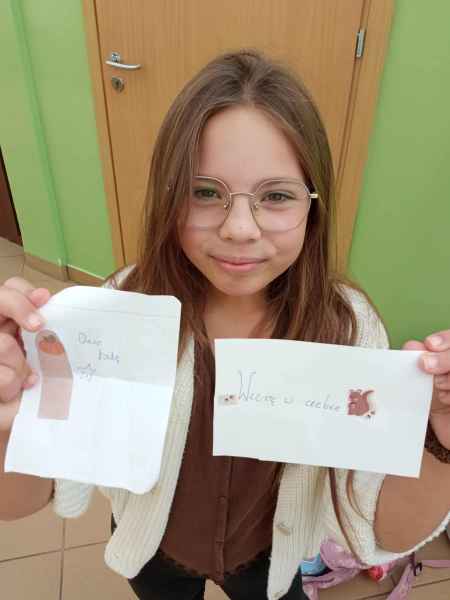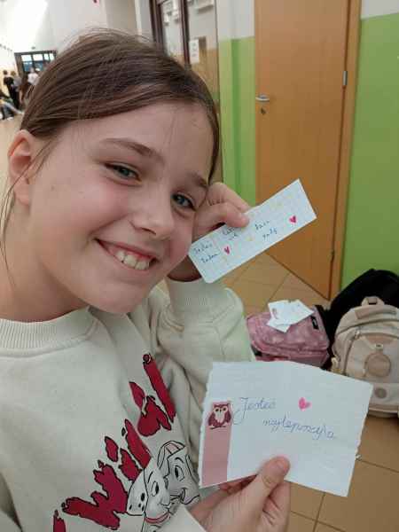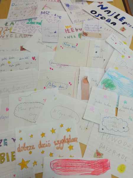 Czy wiecie, że każdego trzynastego dnia miesiąca obchodzi się dzień pozytywnego słowa? O tym zwyczaju uczniowie dowiedzieli się podczas obchodów " Tygodnia Szczęścia w szkole". Klasy 4c i 6b z radością dołączyły do akcji obdarowania kogoś miłym słowem. Uczniowie uświadomili sobie, że: słowa mają znaczenie i mogą ranić, nie każdy rozumie tak samo przekazywany komunikat, bo ważny jest również kontekst wypowiedzi, tworzenie miłej atmosfery jest potrzebne, ważne jest świadome i odpowiedzialne posługiwanie się językiem, dobre słowa wprowadzają pozytywną energię i pomagają "przełamać lody". Nie zapomnijcie obdarować również Waszych najbliższych miłym słowem!
