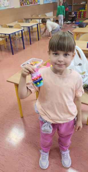 W drugiej części zajęć uczniowie wykonali własnoręcznie kolorowe zaklinacze deszczu, wykorzystując przygotowane materiały plastyczne. Była to nie tylko twórcza zabawa, ale również doskonała okazja do rozwijania zdolności manualnych i poznania kultur innych kontynentów.