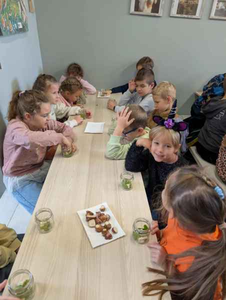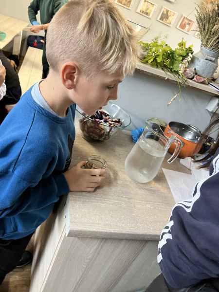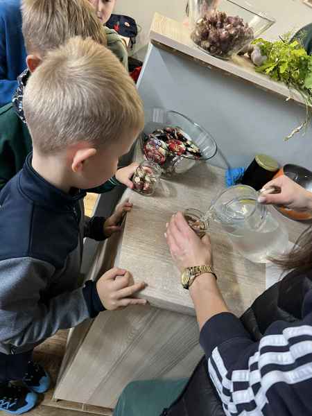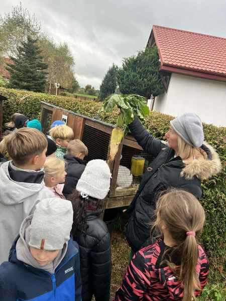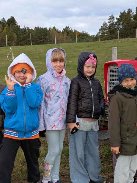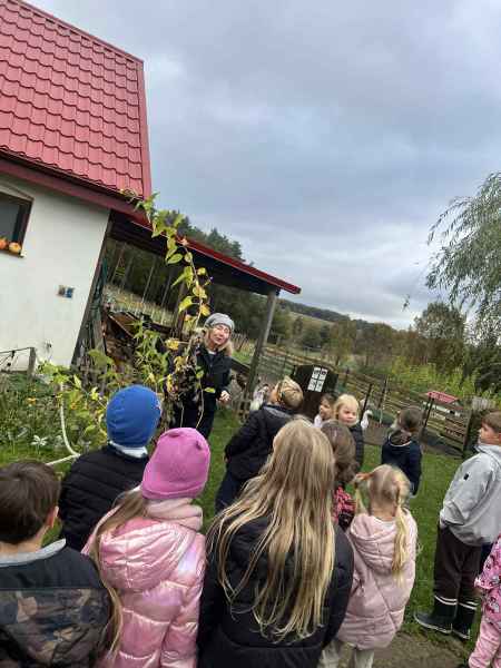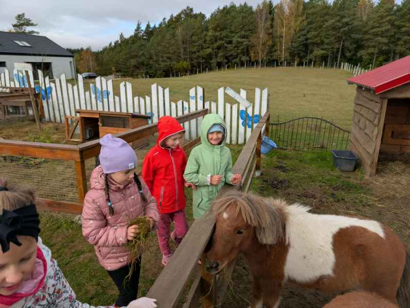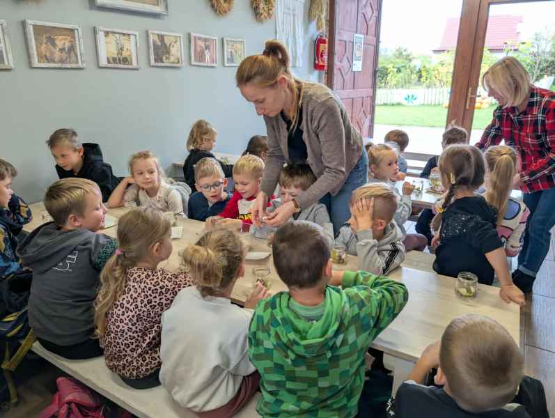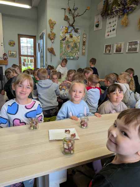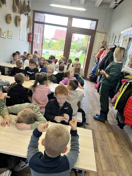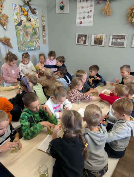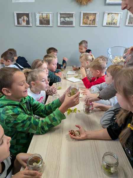 Wszystkie klasy pierwsze w ramach realizacji projektu edukacyjnego "Planeta zdrowia" wybrały się na wyjątkową wycieczkę do Gowińskiej Zagrody Edukacyjnej w Gowinie! Podczas warsztatów „Dzień z Topinamburem” uczniowie poznali to niezwykłe, zdrowe warzywo, a także samodzielnie przygotowali swój własny „słoik odpornościowy”, który zabrali do domu. Nie zabrakło też bliskich spotkań ze zwierzętami - dzieci mogły pogłaskać króliczki, kucyki, owieczki, kózki, a nawet różne gatunki ptactwa. Na zakończenie wycieczki odbył się spacer do pobliskiego lasu, gdzie uczniowie mogli odpocząć i nacieszyć się pięknem przyrody. To był dzień pełen uśmiechu, nauki i dobrej zabawy!