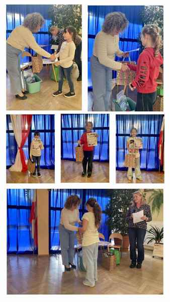 Wszyscy uczestnicy otrzymali pamiątkowe nagrody, a zwycięzcy – dyplomy oraz drobne upominki. Prace zostały zaprezentowane na wystawie w świetlicy szkolnej, dzięki czemu cała społeczność mogła podziwiać jesienne inspiracje młodych artystów. Wszystko odbywało się w radosnej pełnej wsparcia atmosferze i duchu zdrowej rywalizacji. Serdecznie gratulujemy wszystkim autorom prac oraz dziękujemy za zaangażowanie i chęć wspólnego tworzenia! Dzięki Wam świetlica rozkwitła kolorami jesieni.