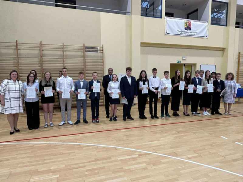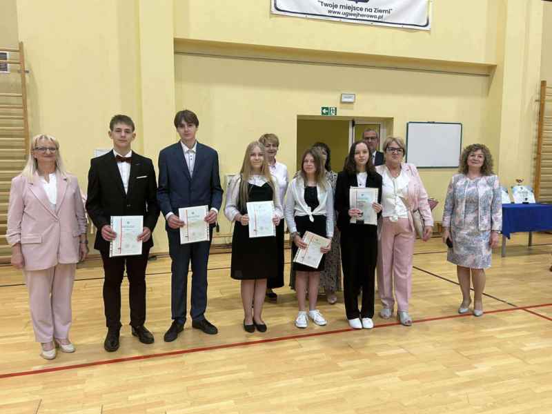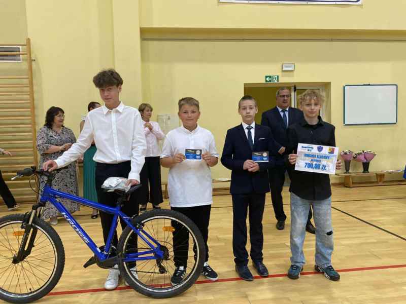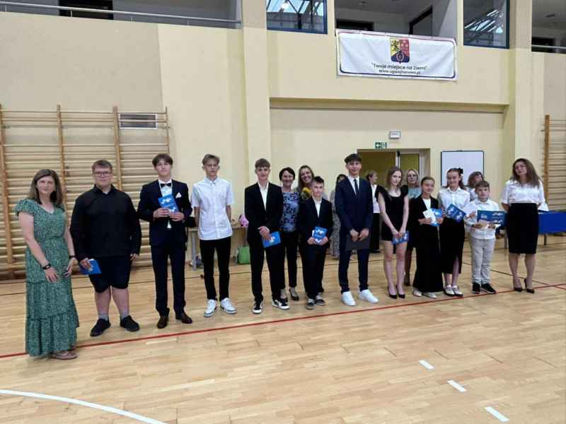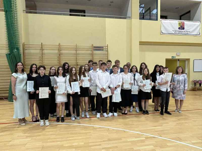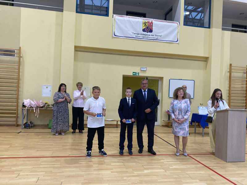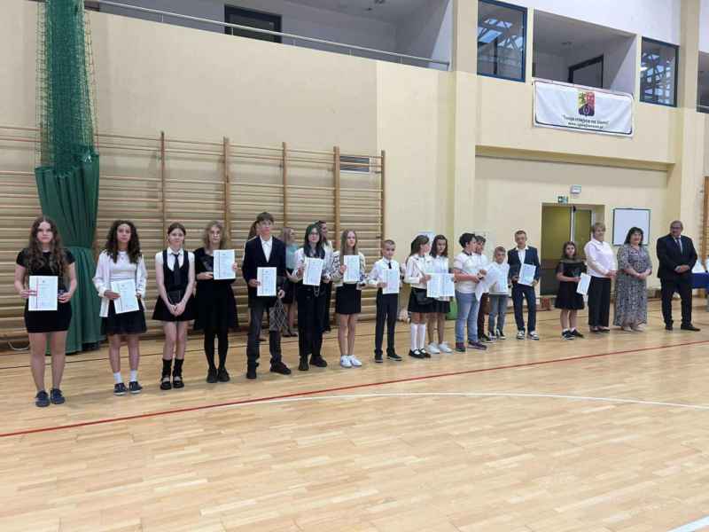 Najpierw wszyscy uczniowie odśpiewali hymn Polski, następnie Pani dyrektor, Bożena Brzuzy,wygłosiła mowę do uczniów oraz podziękowała nauczycielom i pracownikom za pracę w bieżącym roku szkolnym. Najlepszym uczniom zostały wręczone stypendia naukowe i sportowe, a uczniom - prymusom klas świadectwa z wyróżnieniem. Na zakończenie Przewodniczący Rady Gminy wręczył najbardziej aktywnym uczniom nagrody za akcję „ROWEROWY MAJ”,a dla jednego z nich wylosowany został rower. Na koniec Przewodnicząca Rady Rodziców, Pani Barbara Przygoda, podziękowała dyrekcji szkoły, nauczycielom oraz pracownikom administracji i obsługi za owocną współpracę, a także wręczyła upominki dla trzech najlepszych uczniów szkoły, a byli to Leon Stolc, Paulina Gulcz i Zuzanna Ustarbowska. Wszystkim stypendystom i nagrodzonym serdecznie gratulujemy i dziękujemy za postawę godną ucznia naszej szkoły. Życzymy udanych wakacji i spotkania się w kolejnym roku szkolnym 2025/2026.